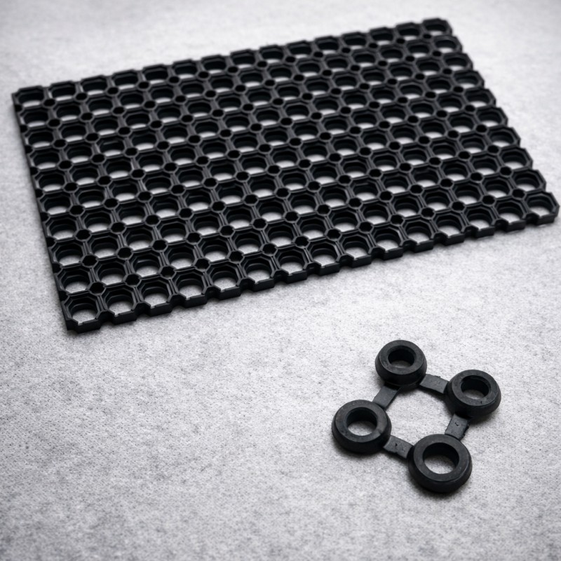 El pavimento alveolar son placas antideslizantes, quitabarros, de gran poder de amortiguación y aislante, Está fabricado en caucho natural.